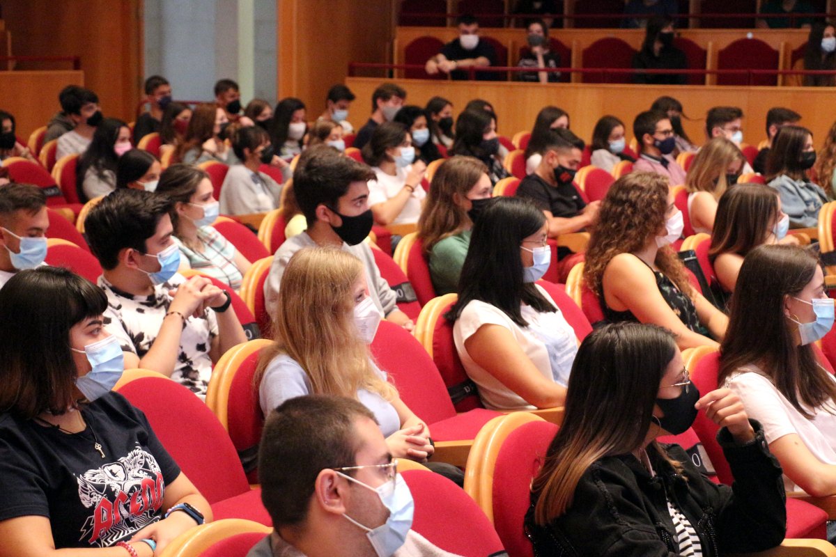 La jornada de acogida y orientación de la Universidad de Burgos se ha celebrado hoy en el Aula Magna del Hospital del Rey. El acto, que se ha realizado en dos turnos, también se ha podido seguir por YouTube. En él han intervenido el rector Manuel Pérez Mateos y la vicerrectora de Estudiantes, Verónica Calderón.