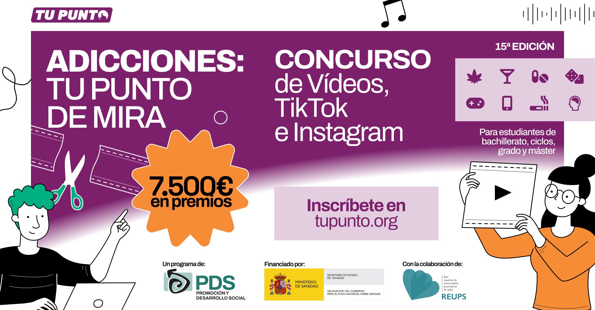 Programa Tu Punto de prevención de conductas adictivas, que cuenta con el apoyo de la REUPS (Red Española de Universidades Promotoras de Salud), la financiación de la Delegación del Gobierno para el Plan Nacional sobre Drogas –Ministerio de Sanidad– y con 64 universidades adheridas al programa, ha convocado el 15º Concurso "Adicciones: tu punto de mira".