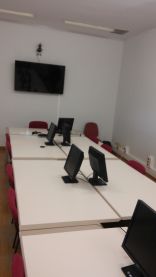 Se pueden realizar videoconferencias mediante cualquier software instalado en el PC (Skype...). La sala tiene varios monitores que reciben video del PC mediante un multiplexor |