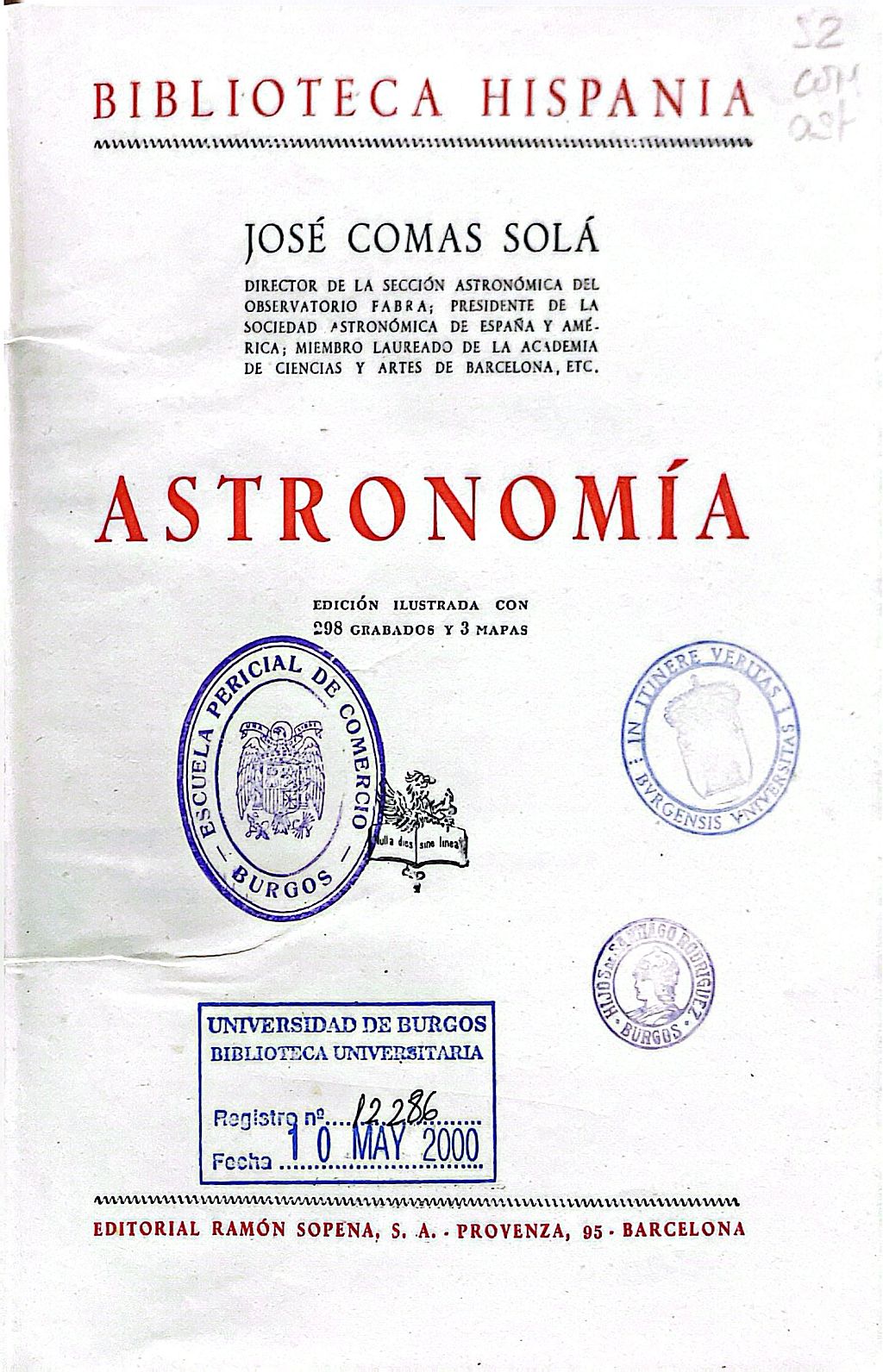 Astronomía, José Comas Solá. Barcelona: Ramón Sopena, 1943