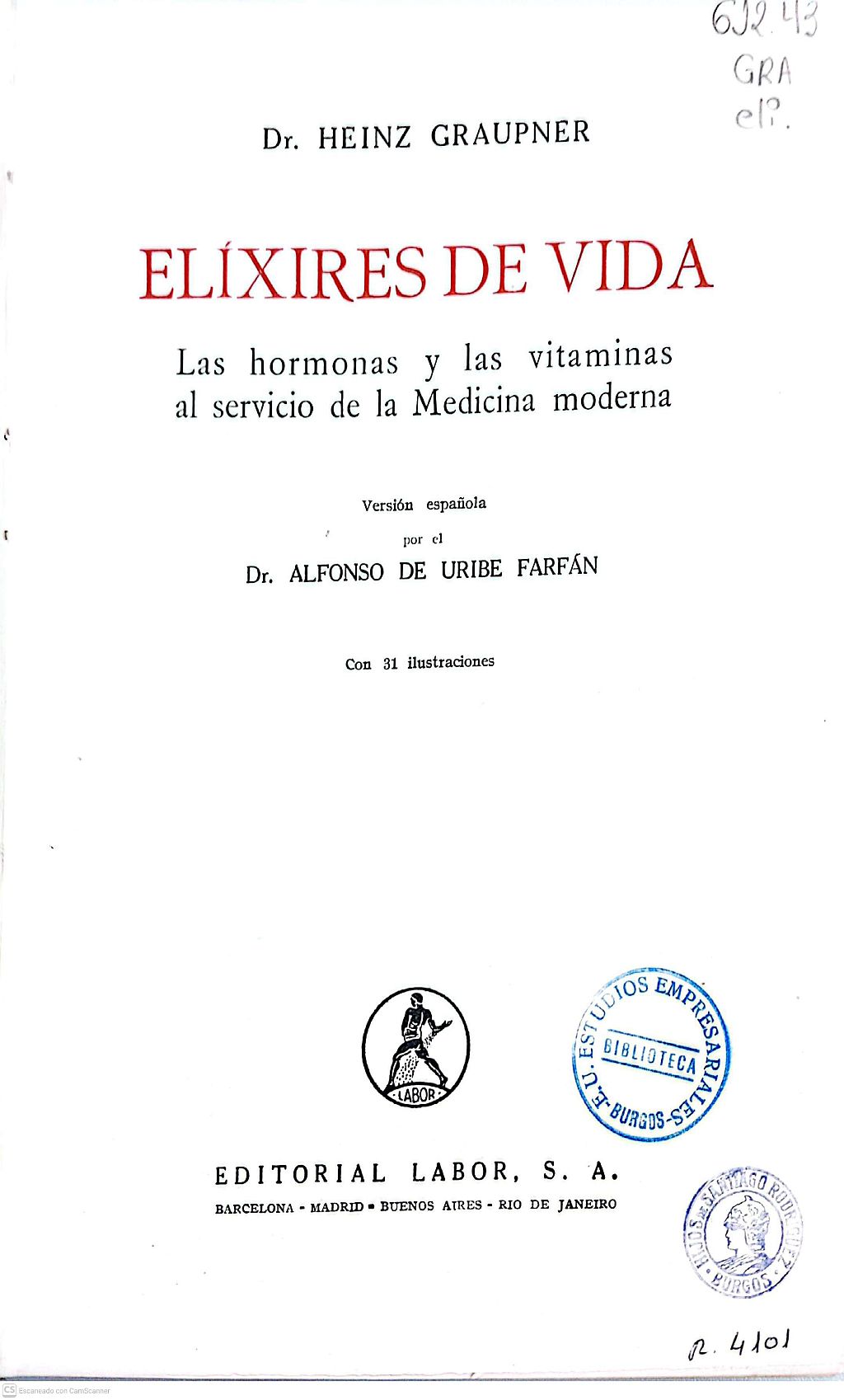 Elixires de vida: las hormonas y las vitaminas al servicio de la medicina moderna, Heinz Graupner. Barcelona: Labor, 194?