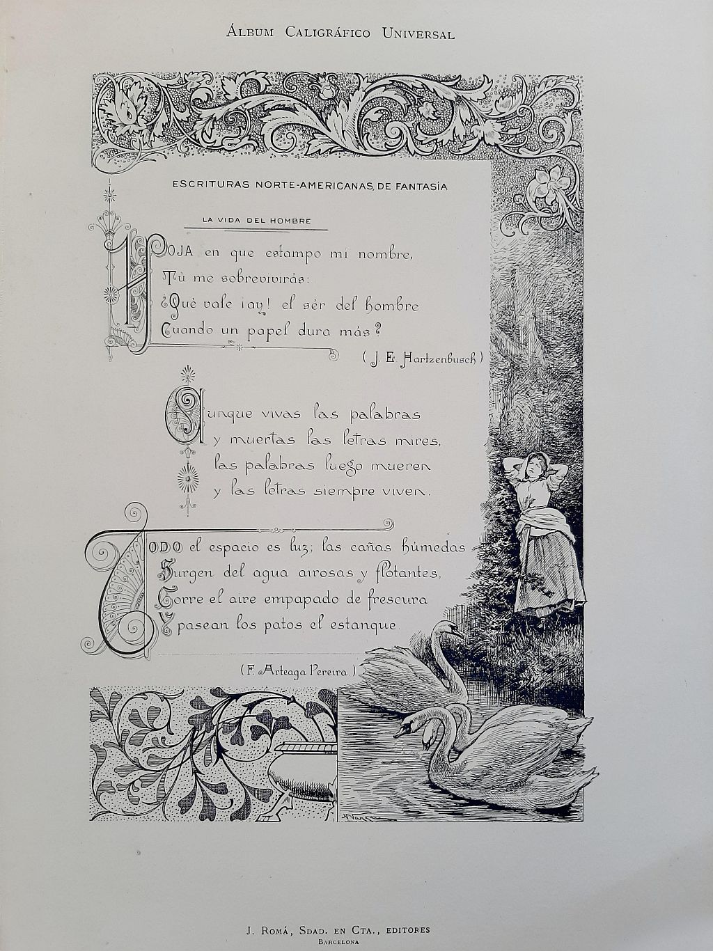 Vázquez, Nicanor, et al. Álbum caligráfico universal : colección de muestras y ejemplos de caracteres de escritura europeos y orientales. J. Romá, 1901