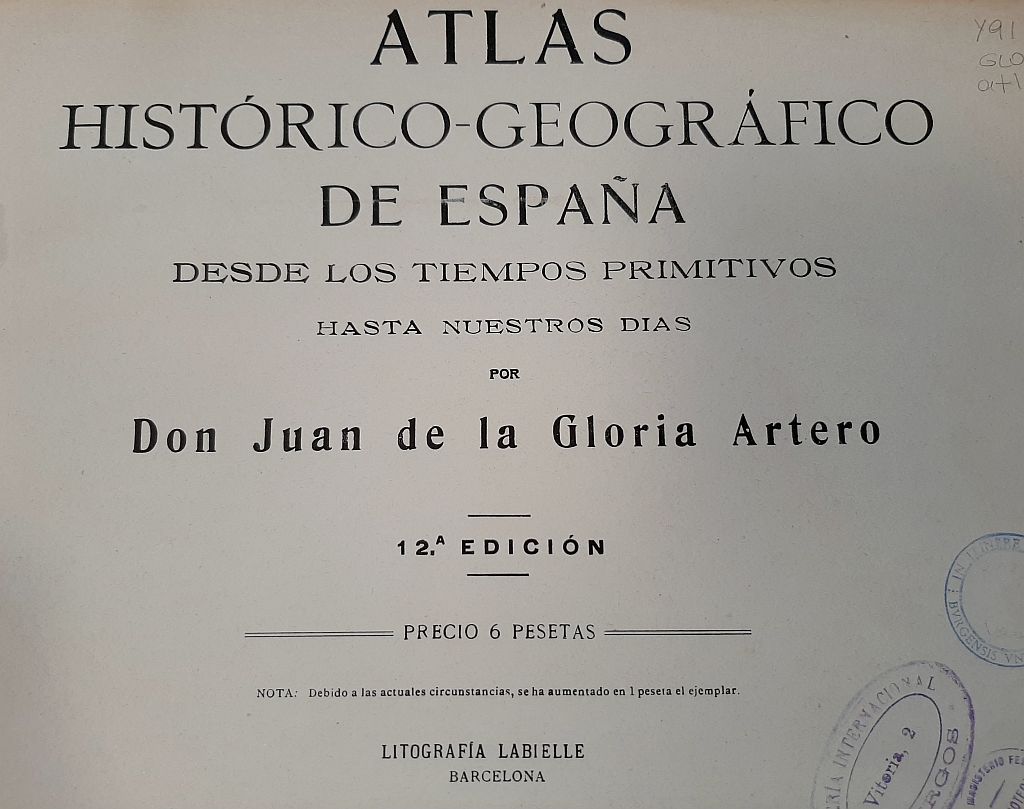 Gloria Artero, Juan de la. Atlas histórico-geográfico de España : desde los tiempos primitivos hasta nuestros días. 12a ed. Barcelona: [s.n.], 188-?. Print.