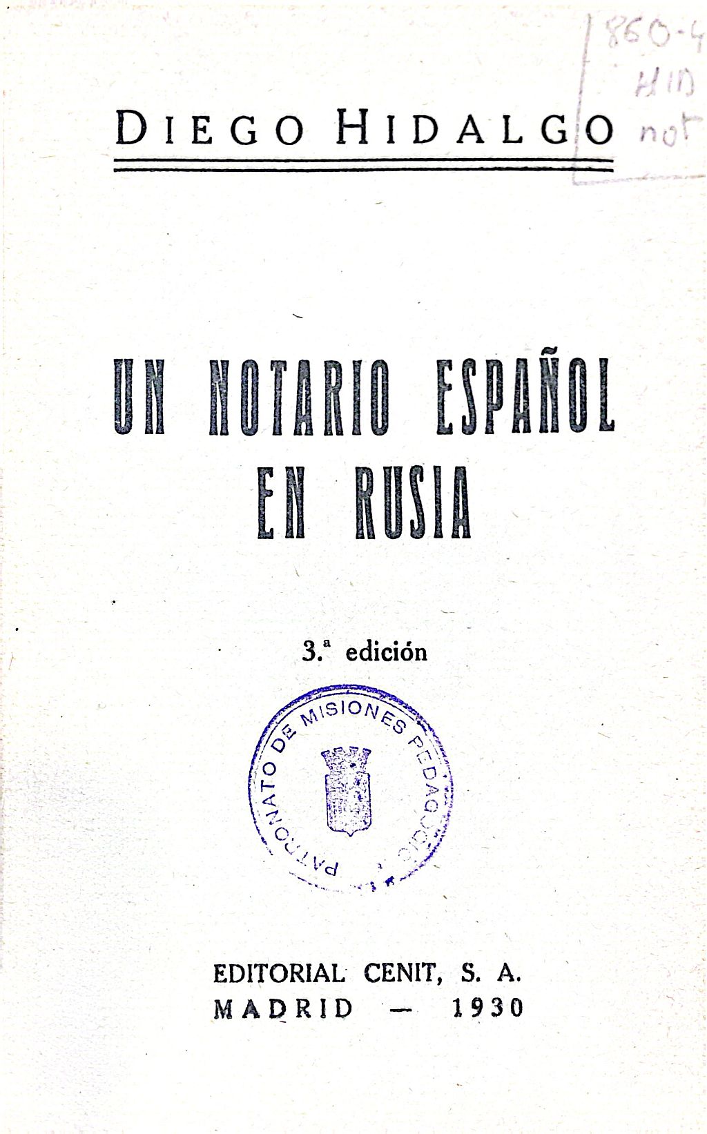 Un notario español en Rusia, Diego Hidalgo y Durán. 3ª edición. Madrid: Cenit, 1930