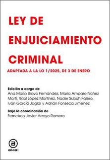 - Referencia en UBUCAT: Arroyo Romero, F. J. (2025). Ley de Enjuiciamiento Criminal : Adaptada a la lo 1/2025 de 3 de Enero. (1st ed.). Edicionesakal México.