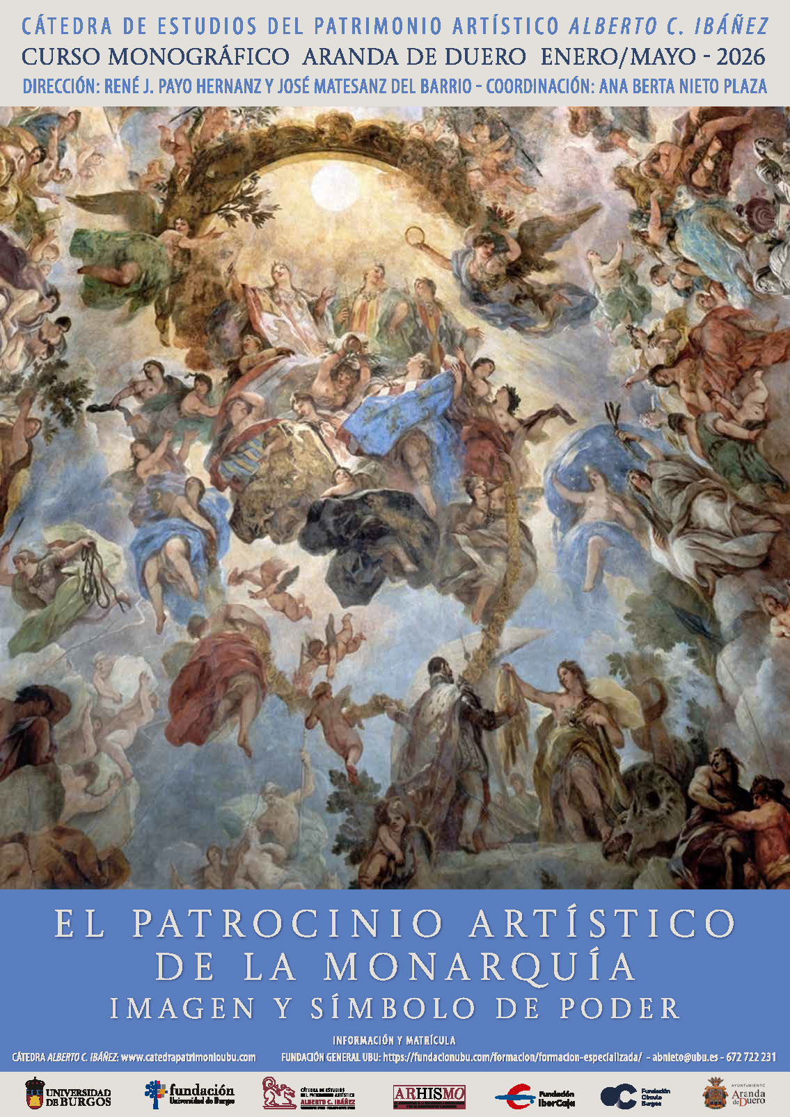 La Cátedra de Estudios del Patrimonio Artístico Alberto C. Ibáñez, fruto de la cooperación entre la Universidad de Burgos y las fundaciones Círculo Burgos e Ibercaja, abre la matrícula del Curso Monográfico 2025. El patrocinio artístico de la Monarquía. Imagen y símbolo de poder. El curso se desarrollará en Aranda de Duero entre enero y mayo de 2026 y la inscripción puede realizarse a través del enlace.