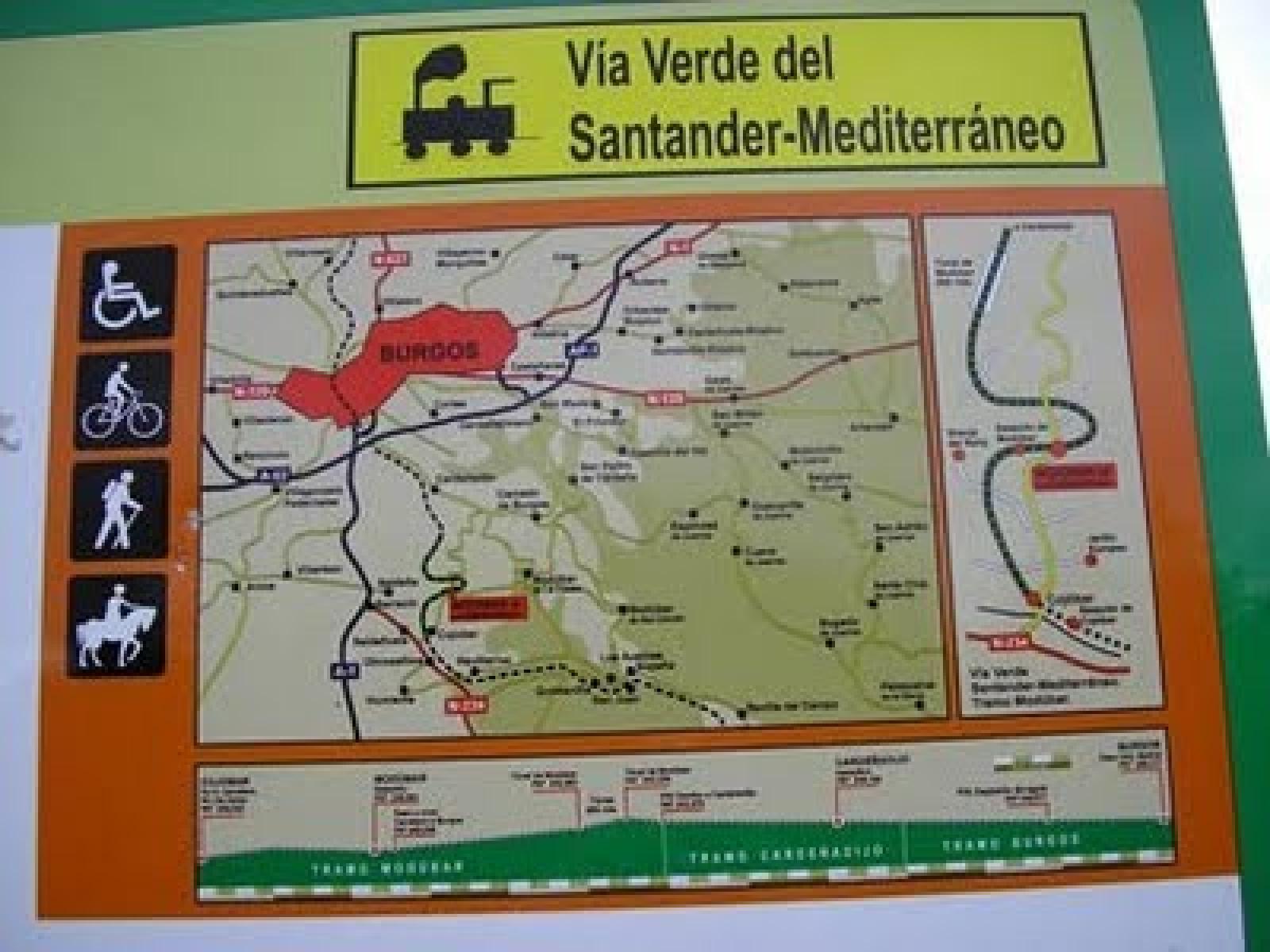 La primera parte trascurre por la Vía Verde “Santander-Mediterráneo”, cuyo inicio se encuentra en la zona Sur de la ciudad. Esta pista se encuentra flanqueada por numerosos arbustos como rosal silvestre, endrinos y majuelos que dan cobijo a multitud de pequeños paseriformes.
