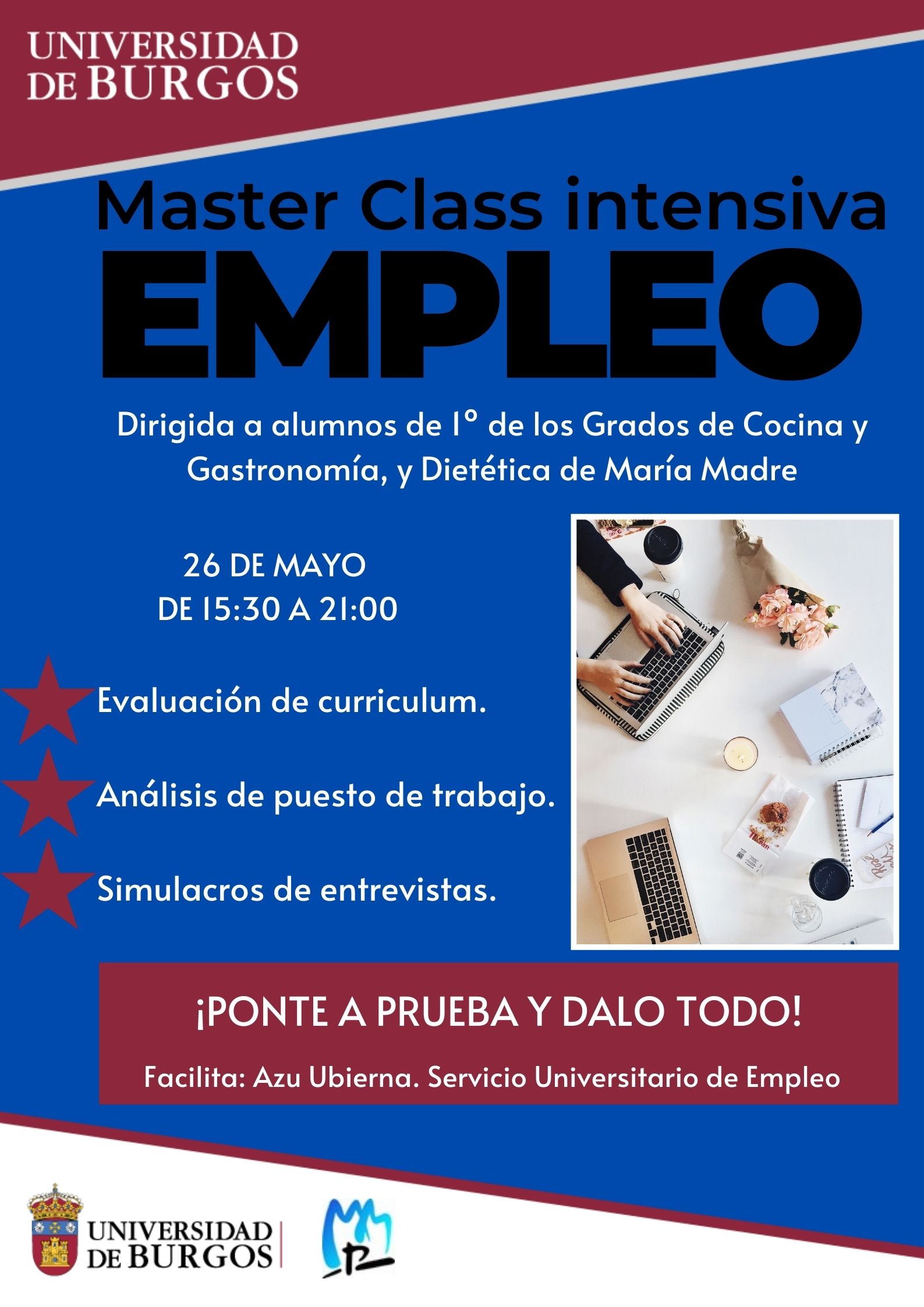 Máster Class Intensiva de Empleo dirigida a Estudiantes de 1º de los Grados de Cocina y Gastromía y Grado en Dietética de María Madre