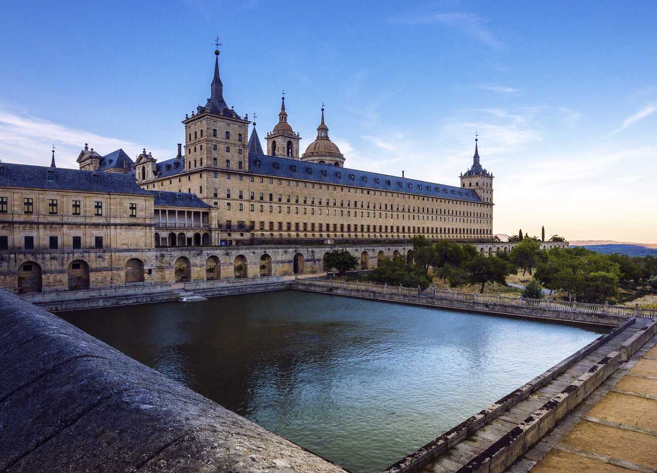 Tras la visita nos dirigiremos a la histórica localidad de San Lorenzo de El Escorial, donde habrá tiempo para comer por libre (es recomendable llevar comida para picnic). A primera hora de la tarde nos espera una de las joyas del patrimonio español: el Real Monasterio de San Lorenzo de El Escorial, un coloso monumental declarado Patrimonio de la Humanidad por la Unesco y obra cumbre del estilo herreriano. Este gigantesco complejo renacentista fue construido entre 1563 y 1584 por orden del rey Felipe II. Concebido como monasterio, palacio real, panteón y biblioteca, fue diseñado principalmente por Juan Bautista de Toledo y Juan de Herrera, con un sobrio y geométrico estilo.