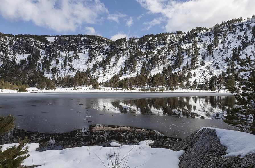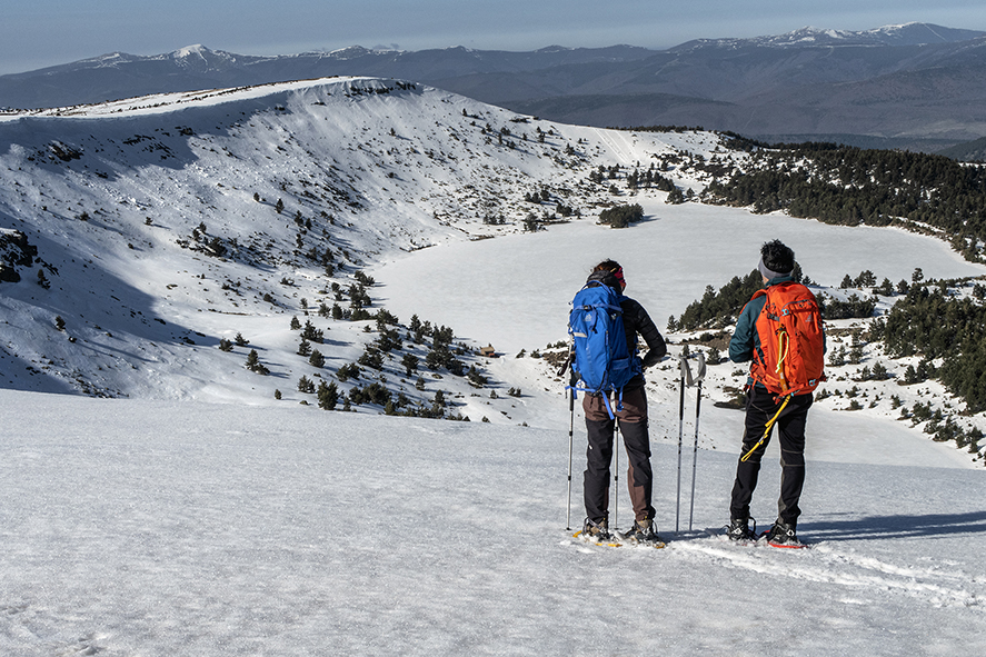 Esta ruta quiere ser un acercamiento invernal a este privilegiado espacio natural y paisajístico. El recorrido llegará hasta la laguna de la Cascada y, si las condiciones de la nieve y la meteorología de la jornada lo permiten, intentará la ascensión hasta la cumbre del Campiña y lo más alto del circo glaciar de la Laguna Negra. Todo un espectáculo apto para los senderistas con alguna preparación y buena forma física. En caso de que las condiciones meteorológicas o del estado de la nieve no lo permitan el acceso hasta el conjunto lagunar superior —patos, Negra y Larga— se efectuará también por la pista cubierta por la nieve.