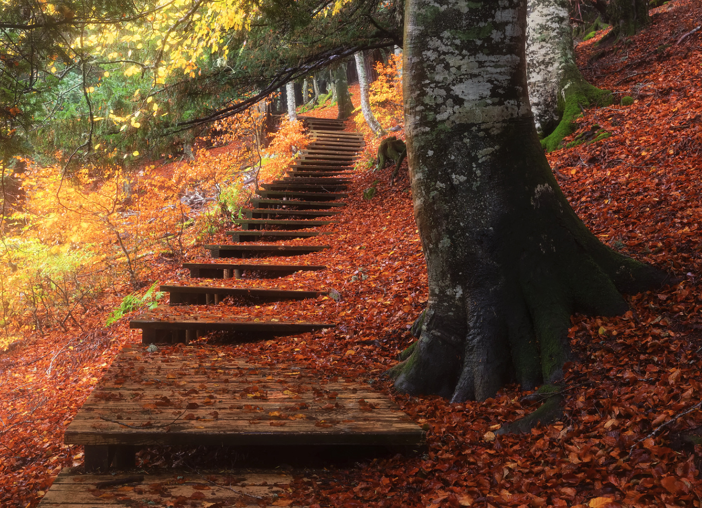 Antes de llegar hasta los tejos hay que ascender unos cuantos centenares de metros por un tupido hayedo. El bosque de tejos está situado en la parte alta del valle y ha siso protegido por una serie de pasarelas de madera que evitan que la erosión del suelo y los daños a sus sensibles raíces.