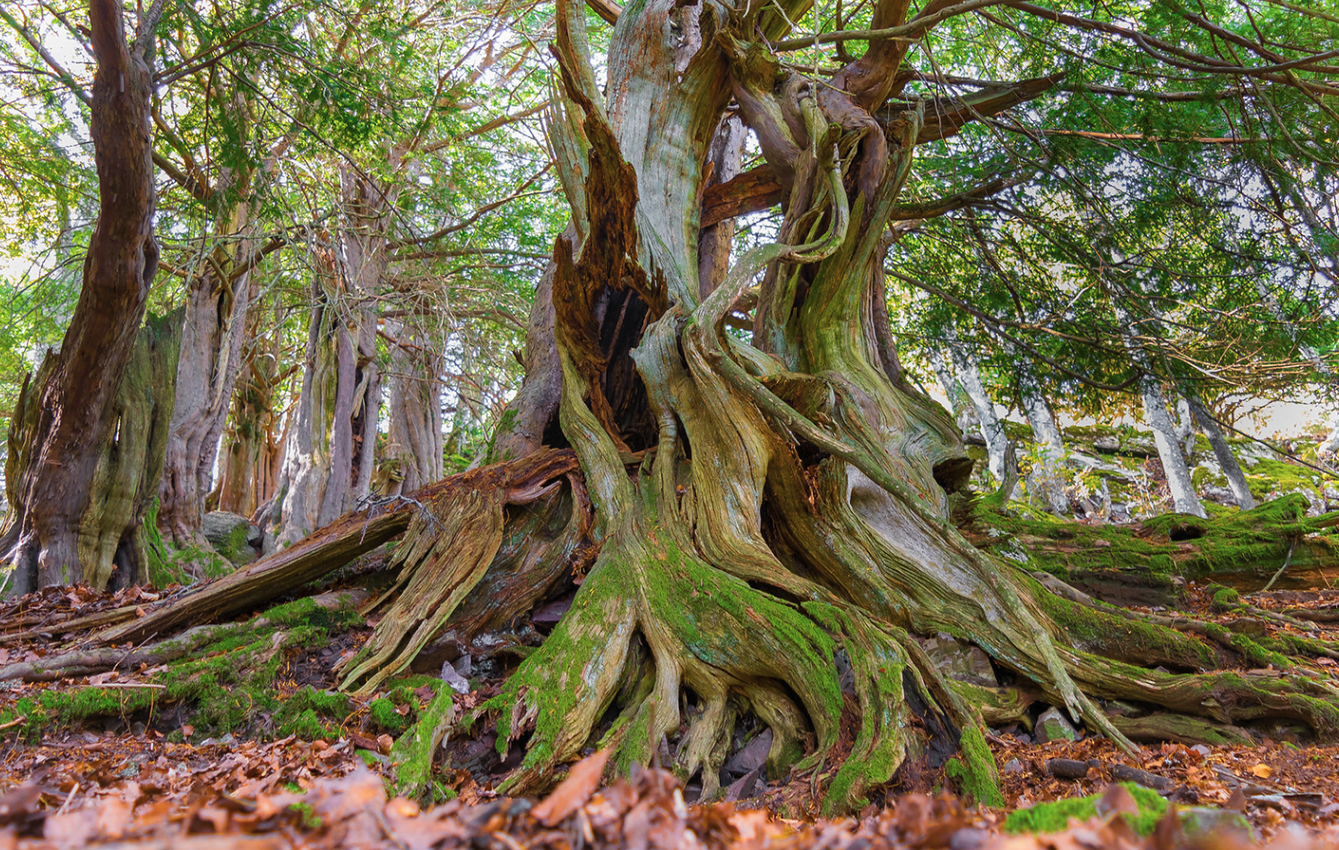 Este árbol de follaje verde oscuro que mantiene la hoja todo el año y puede medir hasta 15 metros ha tenido un carácter sagrado y misterioso para muchos pueblos y culturas. Para los antiguos celtas, el tejo, que puede superar con facilidad los tres mil años de vida, era un árbol que simbolizaba la inmortalidad y por ello era plantado en sus cementerios. En nuestros días los tejos son muy escasos y están en franca regresión debido a que su madera ha sido muy buscada, sobre todo en la Edad Me