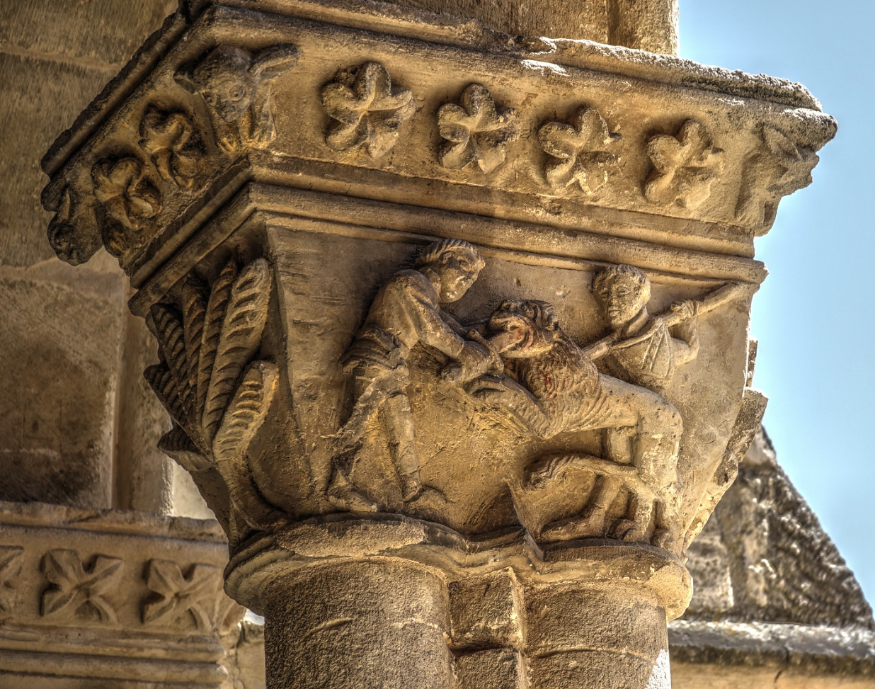 Tras la comida por libre nos espera el claustro de Santa María de Nieva. De estilo gótico, siglo XV, recrea la estructura y la decoración de un claustro tardorrománico de finales del XII o comienzos del XIII. Atesora más de 300 representaciones iconográficas plasmadas en los 87 capiteles que se reparten a lo largo de sus cuatro galerías. Se recrean episodios bíblicos, escenas caballerescas y guerreras, escenas clericales, un completo calendario agrícola y otras muchas escenas campesinas.