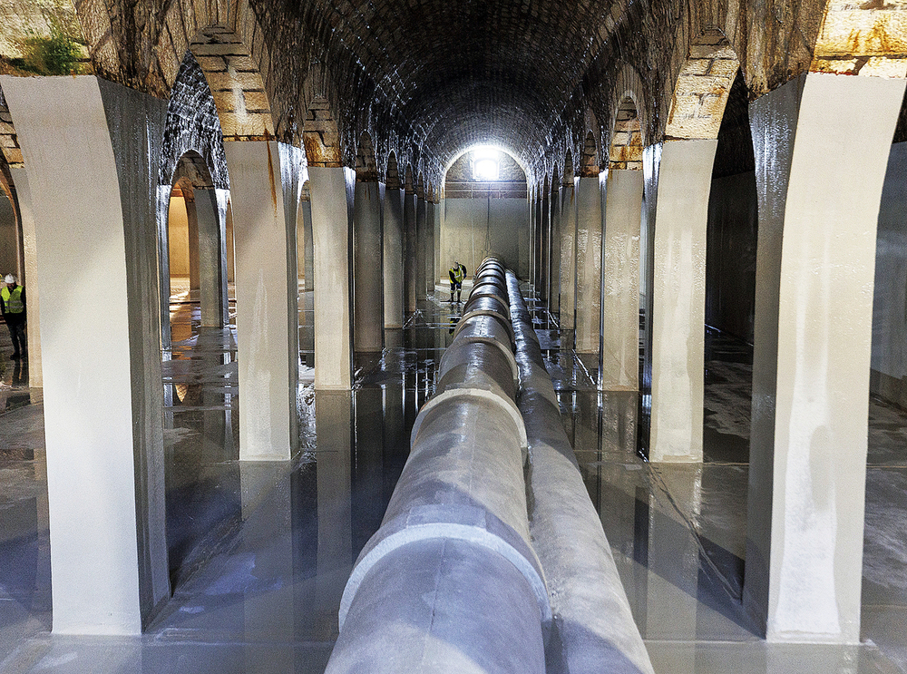 también los más impresionantes y enigmáticos. Estos primeros depósitos, inaugurados en 1892, guardan los secretos del Castillo de Burgos, ya que hasta esta zona llegaban los dominios de la fortaleza durante la invasión francesa, apenas un siglo antes. Adentrarse en las entrañas del cerro resulta sobrecogedor: allí se conservan 131 años de historia de la ciudad. Las llamadas “catacumbas del agua” de Burgos sostienen en sus bóvedas piedras milenarias procedentes del desaparecido monasterio de San Cristóbal de Ibeas, ubicado en San Millán de Juarros, que confieren un carácter casi sagrado al agua que abastece a los burgaleses.