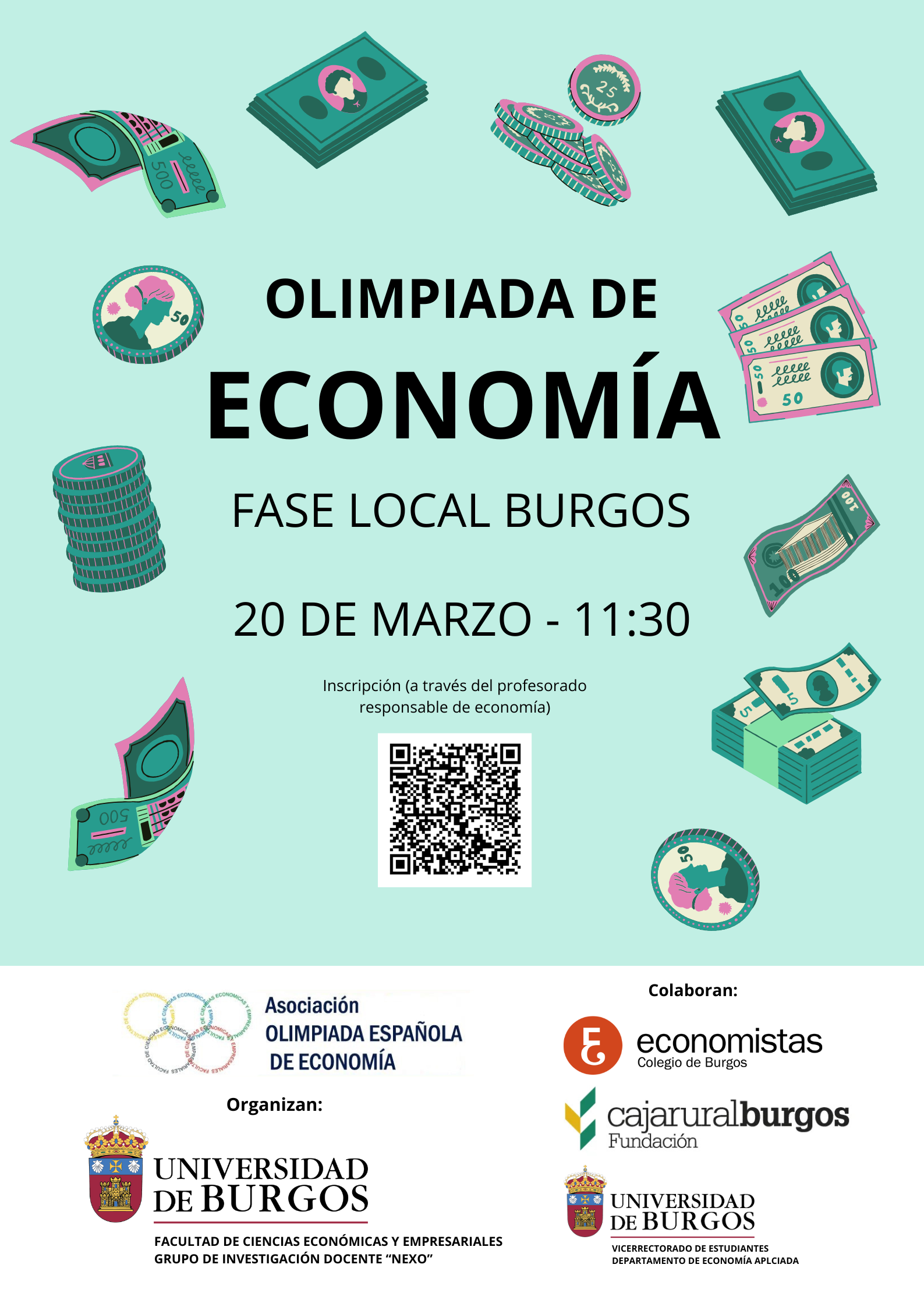 La Facultad de Ciencias Económicas y Empresariales de la Universidad de Burgos, a través del Grupo de Innovación Docente de la Universidad de Burgos “NEXO”, organiza la XI Fase Local de la Olimpiada Nacional de Economía el viernes 20 de marzo de 2026 a las 11:30 horas.