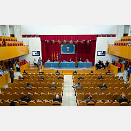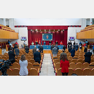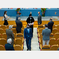 Invitados en el Aula Magna a tenor de la Covid19, distancia de 150 cm entre todos ellos