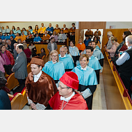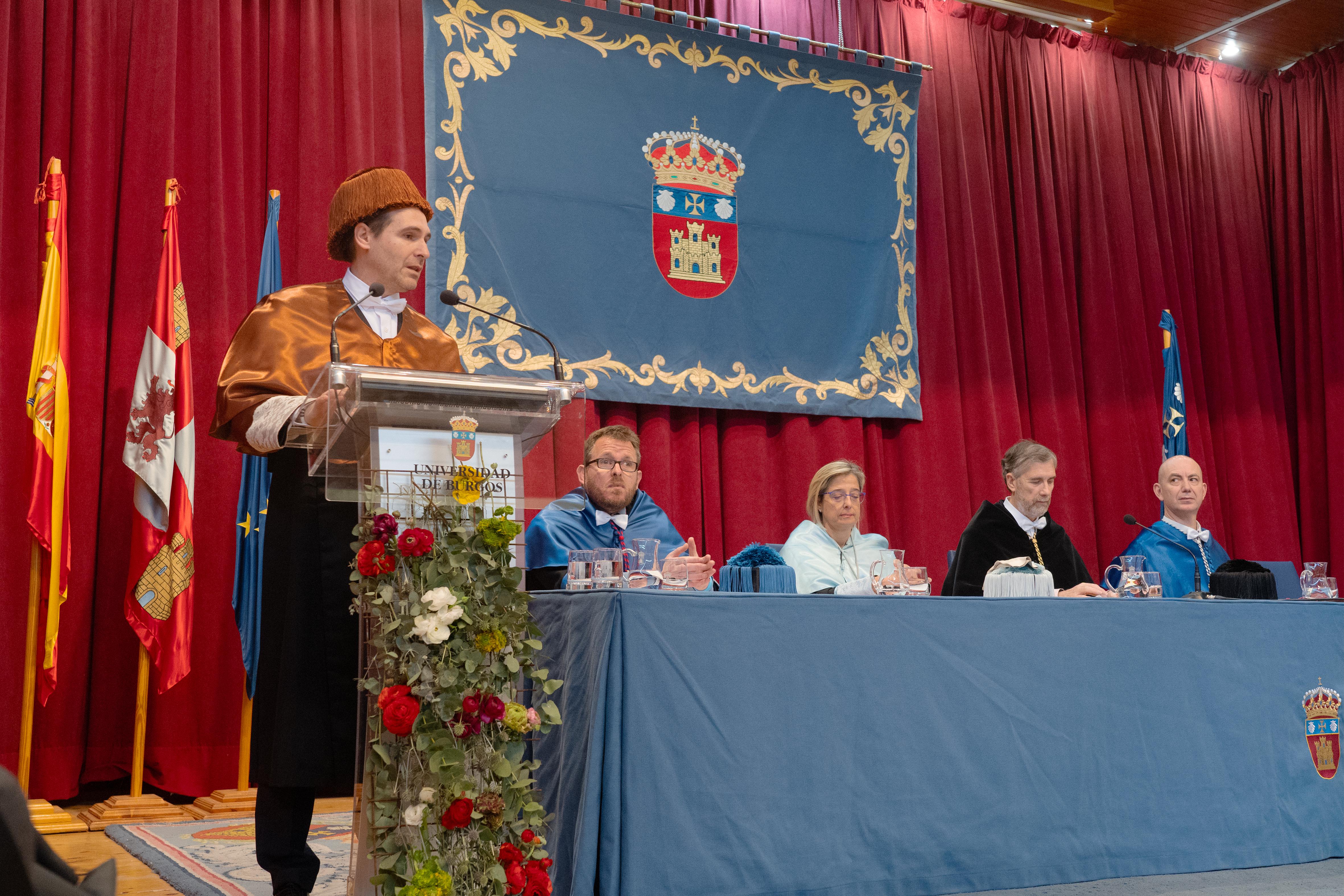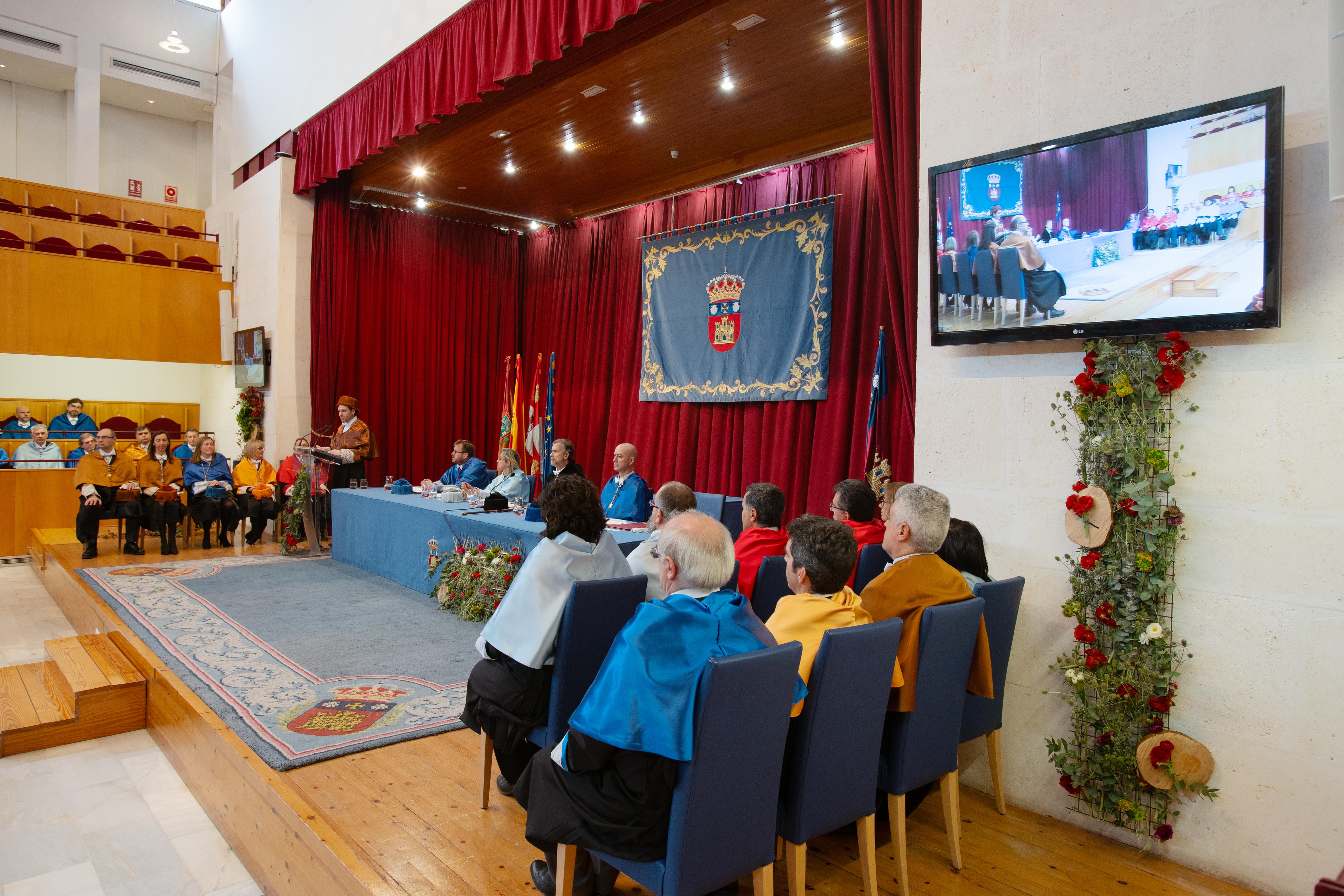La Universidad de Burgos celebra su Fiesta con un acto solemne para conmemorar el día del doctor. El padrino de los nuevos doctores, don Jesús Manuel Alegre Calderón, catedrático del Área de Conocimiento de los Medios Continuos y Teoría de Estructuras, disertó sobre: Retos futuros de los estudios de doctorado. Los doctores que defendieron su tesis en el año 2019 recibieron el título de doctor junto con los atributos: el birrete laureado, excelencia de la dignidad doctoral en señal de coronación de los estudios y merecimientos alcanzados, y, los guantes blancos como símbolos de la altísima dignidad y de la fortaleza que se debe mantener. También se entregaron los premios extraordinarios de doctorado. Un acto emotivo que contó con más de un centenar de doctores revestidos, miembros de la comunidad universitaria, familiares y amigos, así como diversas autoridades y representantes de la sociedad burgalesa.