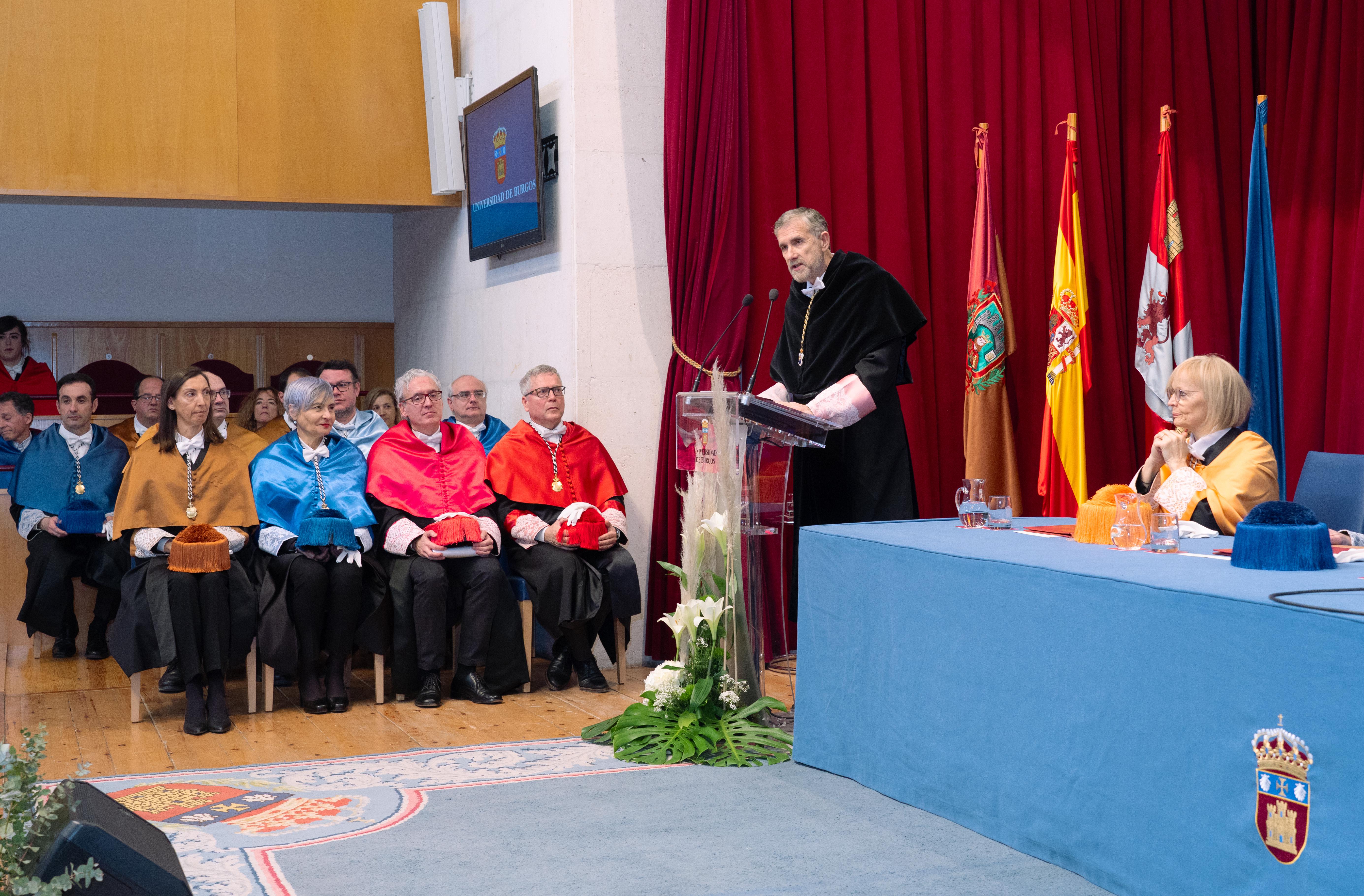 Momento de la intervención del Dr. José Luis González Castro, padrino de los nuevos doctores